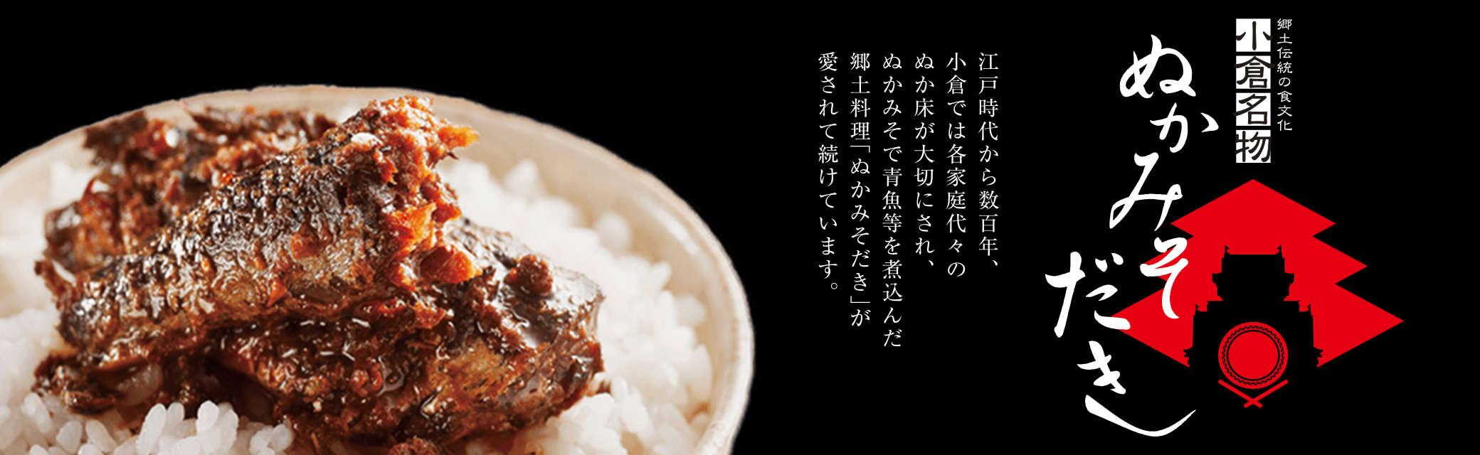 江戸時代にお国替えにより現在の北九州市小倉へやって来られた小笠原公は、家宝にするほど「ぬか床」を大切にしており、城下の民にも奨励しておりました。その後、地元で取れた「さば、いわし」にぬか床を入れて炊いた「ぬか炊き」を大変気に入ったと言われています。呼び名も「ぬか炊き」「じんだ煮」などありますが、ふじたでは「みそ=大切なこと、工夫・趣向を凝らしたこと」という意味を重ねて「ぬかみそだき」と称しているそうです。