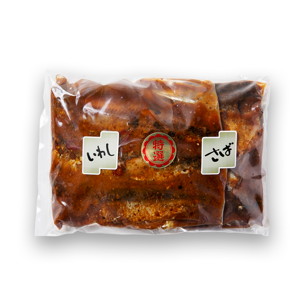 さば(ノルウェー産)・いわし(国産)・米ぬか・醤油・砂糖・醸造酢・生姜・食塩・山椒・赤唐辛子/調味料(アミノ酸等)(一部に小麦・大豆・さばを含む)