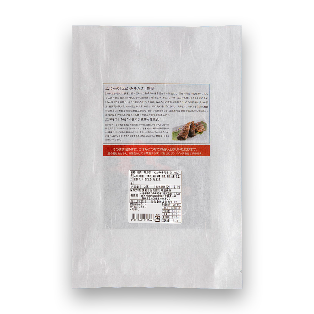 【常温】保存料・着色料無添加ぬかみそだき(いわし)和紙袋